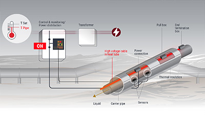 在寒冷地區,單單保溫層并不能防止水管凍結。管道防凍系統可以防止管道內的液體凍結,例如一般的水管和噴淋消防裝置的管道。